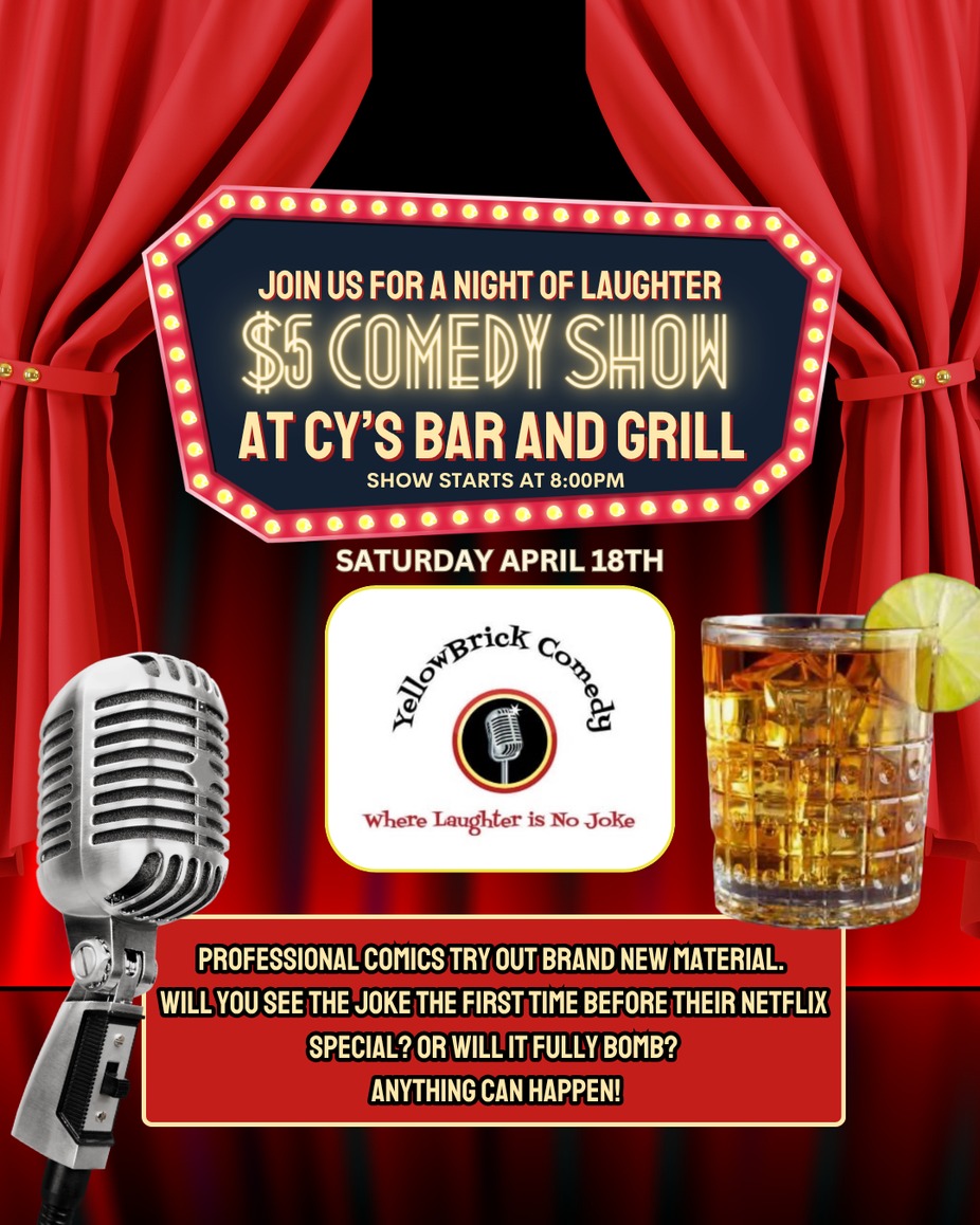 Anything can happen! Tickets $5 Cash or Venmo at the door. Hosted by YellowBrick Comedy