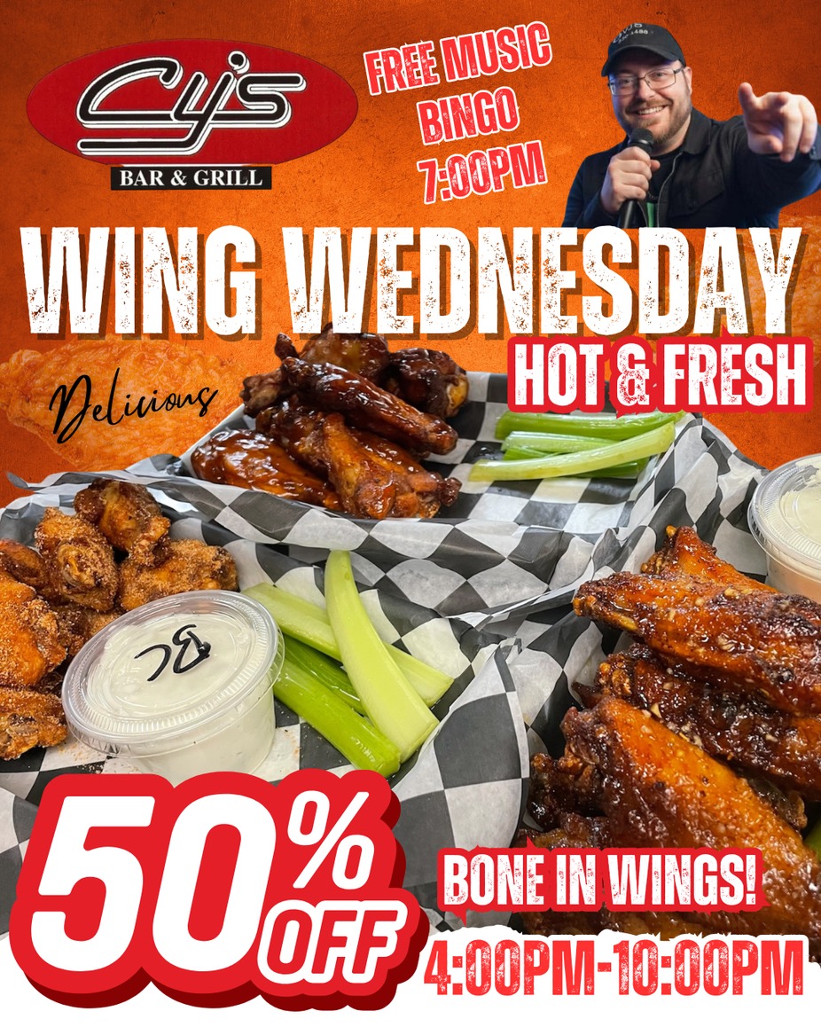 Join us for free Music Bingo and Wing Wednesday!