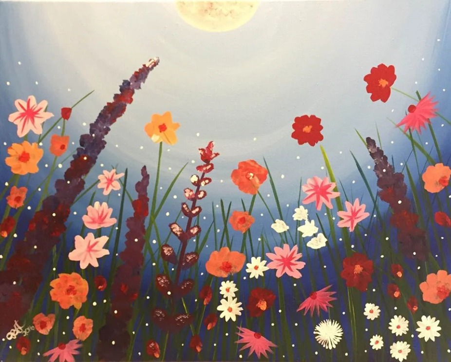 Connect with your creative side and join us for our no-experience-required art class-all supplies included-directed by trained, local artists, who will guide you through "Summer Night Flower Garden" acrylic on canvas.