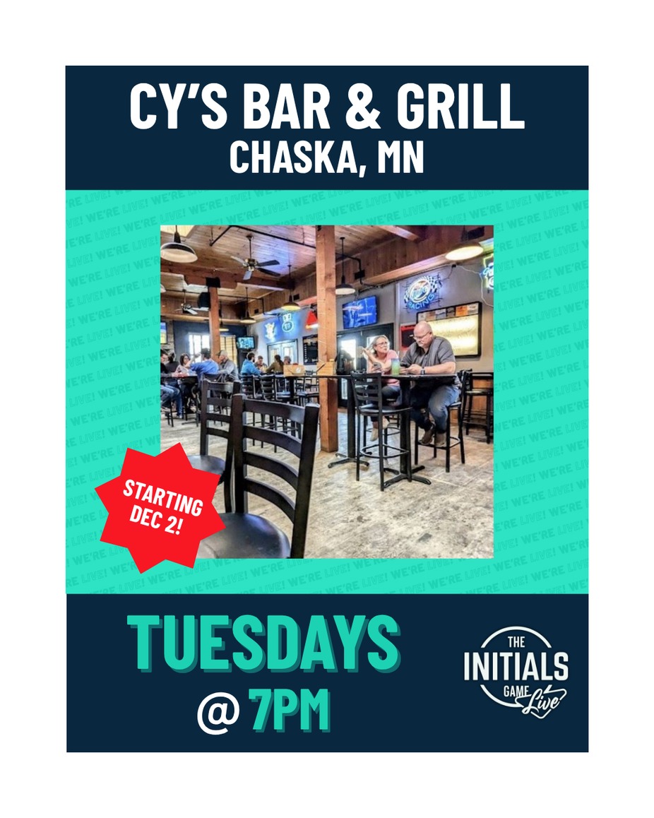 Come Join us for The Initials Game Live!Tuesday Night's @ Cy's Bar & Grill