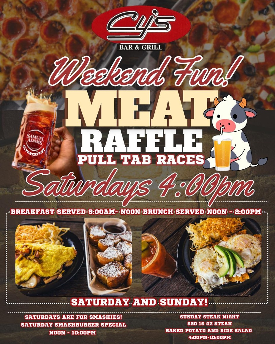 💰🥩🐷MEAT RAFFLE AND PULL-TAB RACES SATURDAYS AT 4:00PM🐮🥩💰