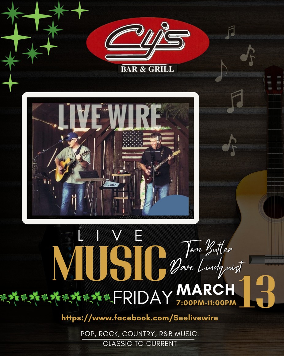 Live Wire duo is back at historic Cy's Bar & Grill in Chaska. C'mon down for a night of classic rock, country, R&B, and soul music. Good music, great times!